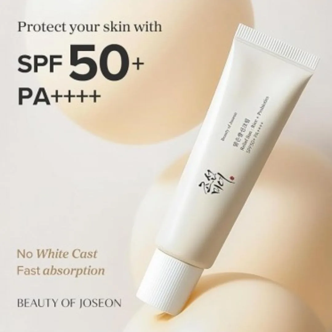 El Beauty of Joseon - Relief Sun Rice + Probiotics SPF50+ 50ml es un protector solar químico con textura tipo crema hidratante que protege la piel de los rayos UVA/UVB mientras la nutre y calma gracias a su fórmula enriquecida con extracto de arroz y probióticos.