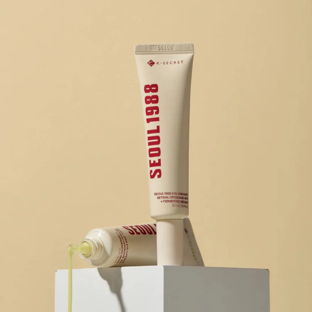 Despierta la zona de tus ojos con una crema de alto impacto: K-SECRET Seoul 1988 Eye Cream combina 4 % de retinal encapsulado en liposomas con extractos fermentados de frijol para atacar signos de envejecimiento, mejorar brillo y textura, y reafirmar esa piel tan delicada.