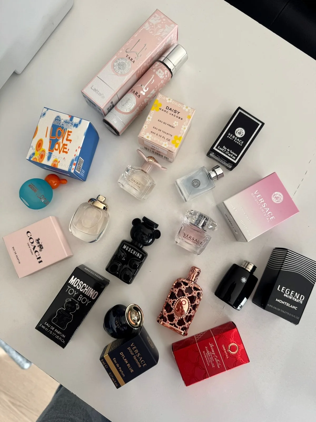 Este set incluye versiones icónicas de casas reconocidas como Moschino, Yara, Versace, Montblanc, Orientica, entre otras, cada una cuidadosamente seleccionada para ofrecer variedad entre aromas florales, frutales, orientales y amaderados.