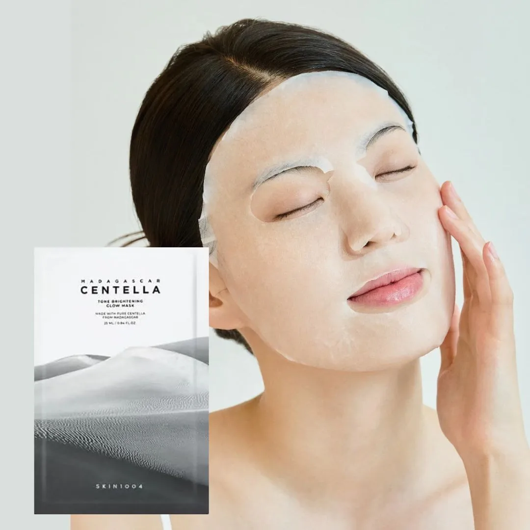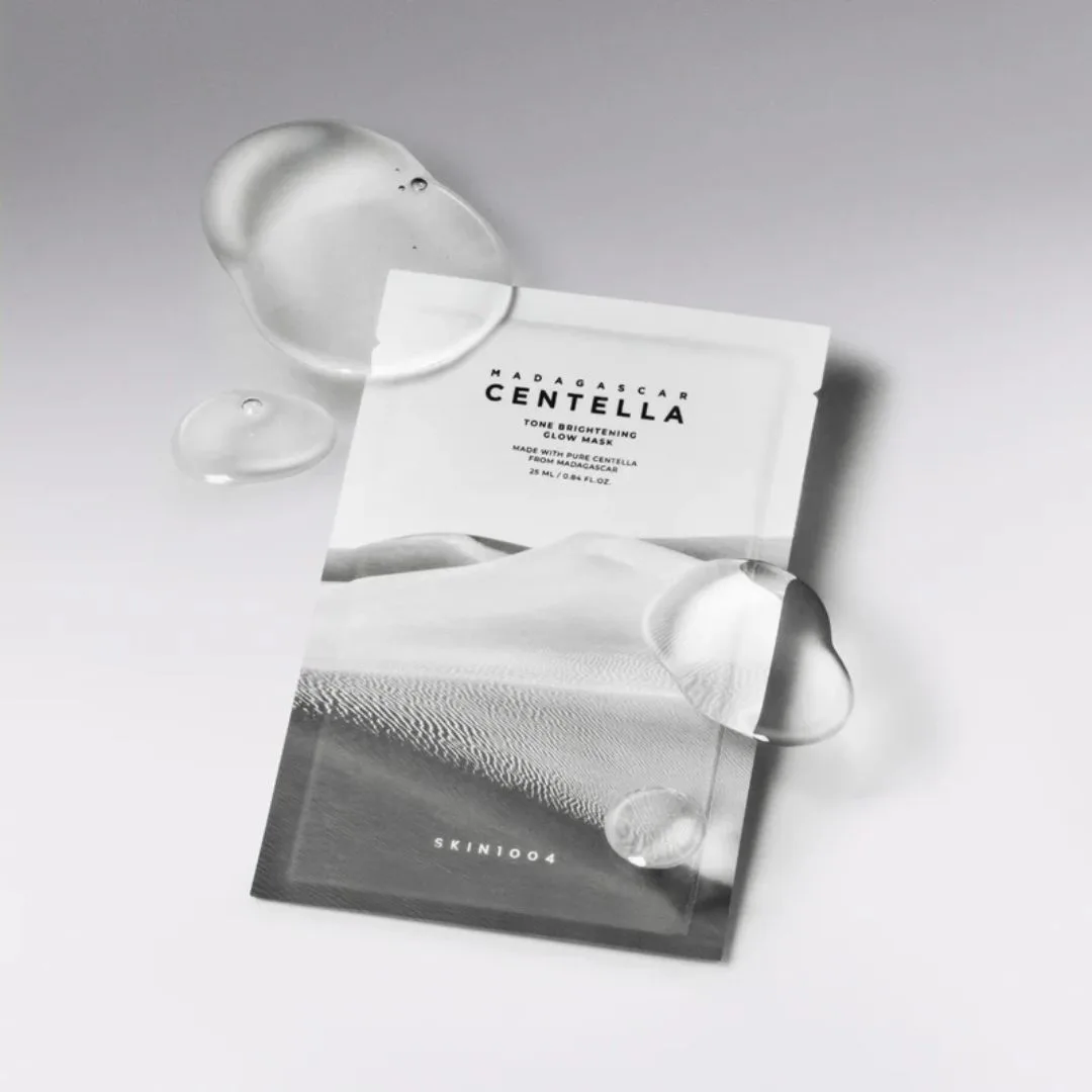 • La SKIN1004 - Madagascar Centella Tone Brightening Glow Mask 25ml es una mascarilla facial iluminadora formulada con centella asiática de Madagascar y cápsulas de vitamina C, que ayudan a mejorar la luminosidad y el tono de la piel sin causar irritación.